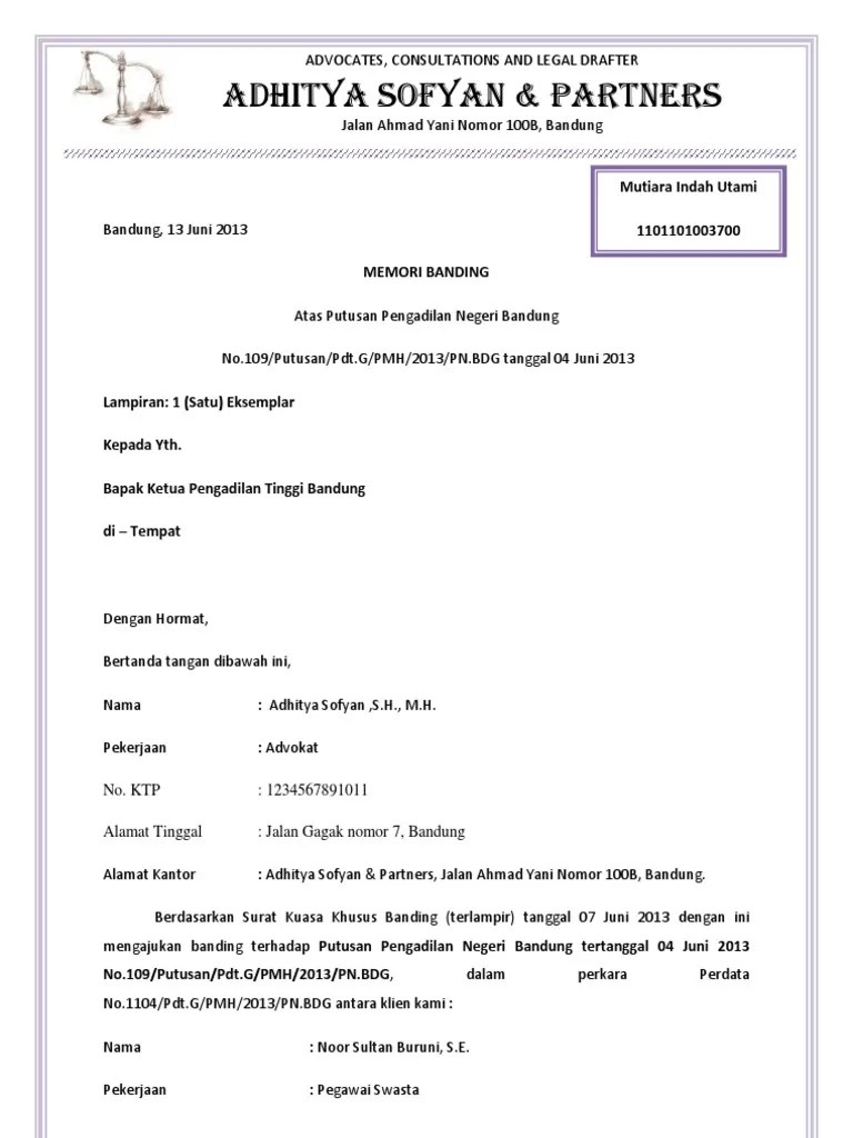 Contoh Surat Permohonan Banding Perdata Pdf - Top Pdf Contoh Surat Kuasa 1 Pdf 123dok Com / Asli surat permohonan bermaterai, photocopy 3 rangkap, dilengkapi file softcopy permohonan (format ms.word) ke dalam bentuk cd;. Permohonan banding atas putusan pengadilan agama surakarta tanggal 21 juli . Asli surat permohonan bermaterai, photocopy 3 rangkap, dilengkapi file softcopy permohonan (format ms.word) ke dalam bentuk cd; Sebagai bahan pertimbangan ketua pengadilan tata . Dian ditulis dalam surat kuasa untuk membayar (sku. Menyerahkan surat permohonan, gugatan, permohonan banding, permohonan kasasi,.